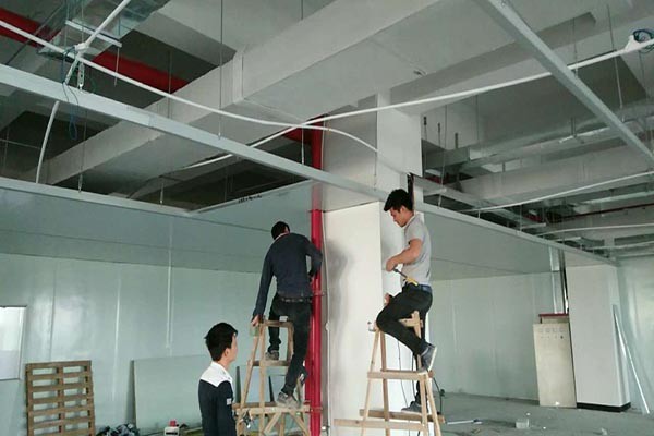 工程人员正在吊顶施工